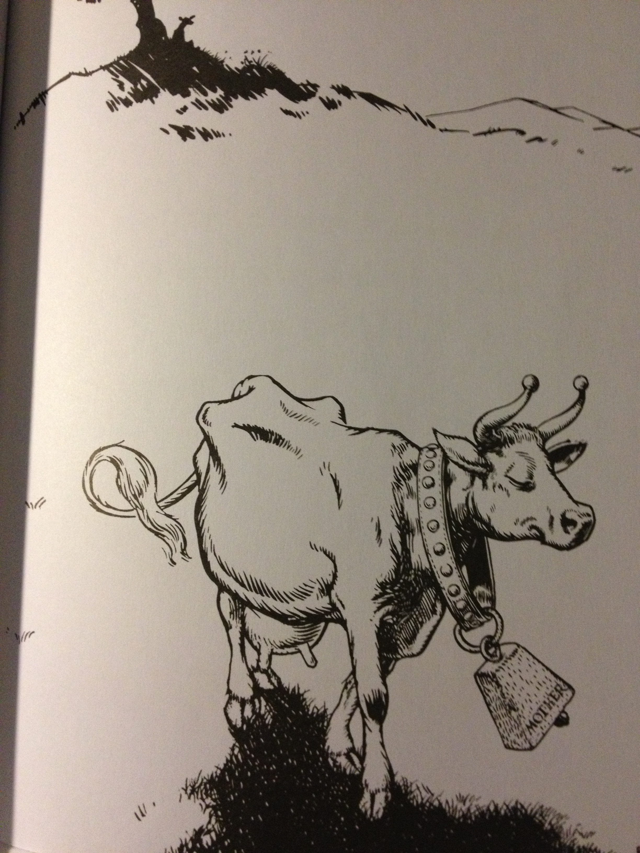 “His mother saw that he was not lonesome, and because she was an understanding mother, even though she was a cow, she let him just sit there and be happy.”