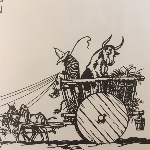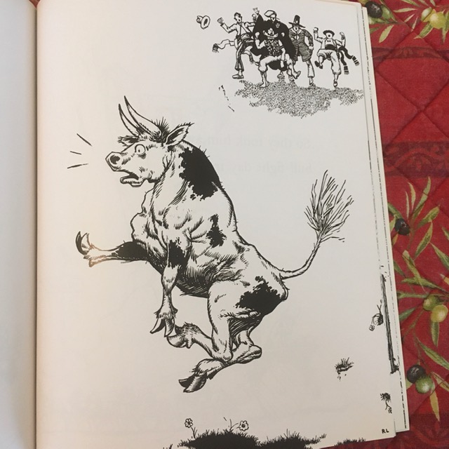 Even as he grows older, and much bigger, Ferdinand is able to tune out the acrimony and action in his life. His peaceful and contented NINE energy is cushioned by his special spot, and his inner Zen is protected by his understanding mother. When scouts from Madrid arrive, looking for potential participants for bullfighting, the other bulls try to garner attention. Ferdinand knows his self-effacing 9 tendencies count him out. But then, an unfortunate bee sting on his bottom, throws his life entirely off course! Because he bucks and stomps aggressively in reaction, he is taken to the bullfights in Madrid when scouts mistake him for a fierce contender. Being taken away from his carefully cultivated environment plays into his basic 9 fear of loss and separation, and we can see his unease and depression in the pages as he is carted off to his fate.